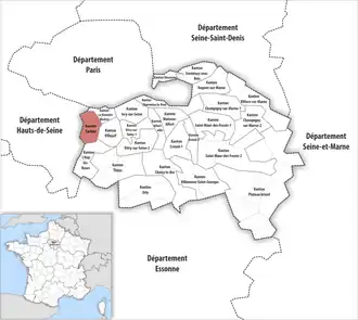 ![]() Lage des Kantons Cachan im Département Val-de-Marne | |