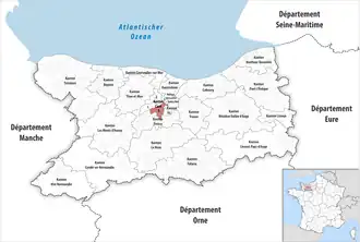 ![]() Lage des Kantons Caen-5 im Département Calvados | |