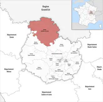 ![]() Lage des Kantons Châtillon-sur-Seine im Département Côte-d’Or | |