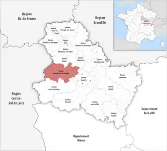 ![]() Lage des Kantons Charny Orée de Puisaye im Département Yonne | |
