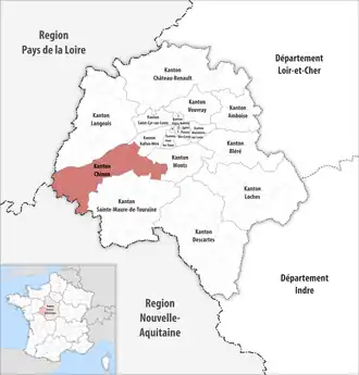 ![]() Lage des Kantons Chinon im Département Indre-et-Loire | |