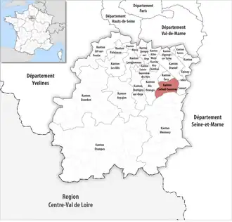 ![]() Lage des Kantons Corbeil-Essonnes im Département Essonne | |