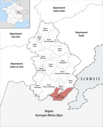 ![]() Lage des Kantons Coteaux du Lizon im Département Jura | |