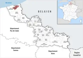 ![]() Lage des Kantons Coudekerque-Branche im Département Nord | |
