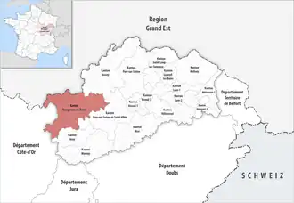 ![]() Lage des Kantons Dampierre-sur-Salon im Département Haute-Saône | |