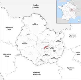 ![]() Lage des Kantons Dijon-6 im Département Côte-d’Or | |