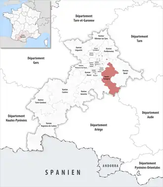 ![]() Lage des Kantons Escalquens im Département Haute-Garonne | |