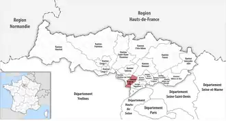 ![]() Lage des Kantons Franconville im Département Val-d’Oise | |