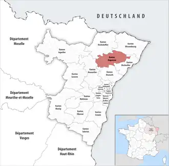 ![]() Lage des Kantons Haguenau im Département Bas-Rhin | |