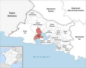 ![]() Lage des Kantons Istres im Département Bouches-du-Rhône | |