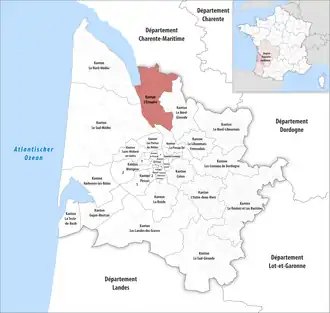 ![]() Lage des Kantons L’Estuaire im Département Gironde | |
