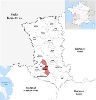 ![]() Lage des Kantons La Plaine Niortaise im Département Deux-Sèvres | |