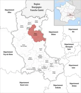 ![]() Lage des Kantons Le Coteau im Département Loire | |