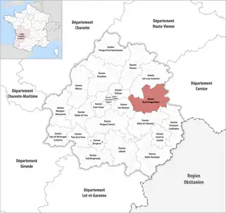 Lage des Kantons Le Haut-Périgord noir im Département Dordogne