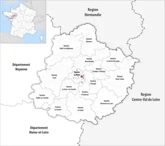 ![]() Lage des Kantons Le Mans-3 im Département Sarthe | |