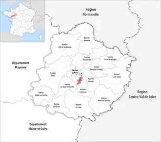 ![]() Lage des Kantons Le Mans-6 im Département Sarthe | |