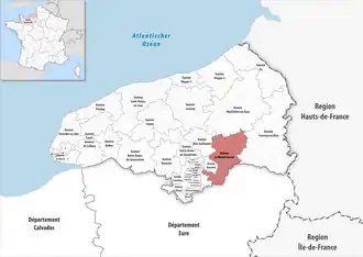 ![]() Lage des Kantons Le Mesnil-Esnard im Département Seine-Maritime | |