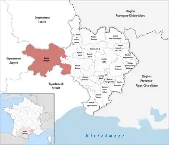 ![]() Lage des Kantons Le Vigan im Département Gard | |