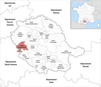 ![]() Lage des Kantons Les Portes du Tarn im Département Tarn | |