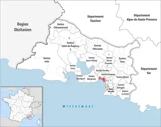 - ↑ Décret n° 2014-271 du 27 février 2014 portant délimitation des cantons dans le département des Bouches-du-Rhône publiziert im JORF und auf Légifrance (französisch).