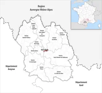 ![]() Lage des Kantons Mende-2 im Département Lozère | |