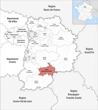 ![]() Lage des Kantons Montereau-Fault-Yonne im Département Seine-et-Marne | |