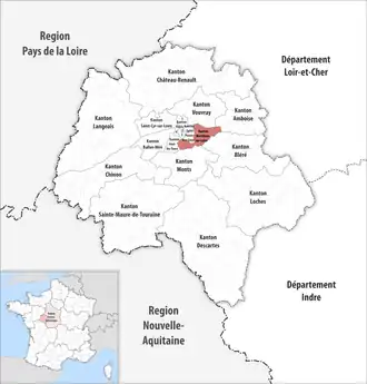 ![]() Lage des Kantons Montlouis-sur-Loire im Département Indre-et-Loire | |