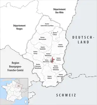 ![]() Lage des Kantons Mulhouse-3 im Département Haut-Rhin | |