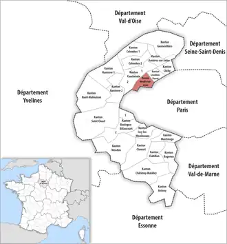 ![]() Lage des Kantons Neuilly-sur-Seine im Département Hauts-de-Seine | |