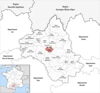 ![]() Lage des Kantons Nord-Lévezou im Département Aveyron | |
