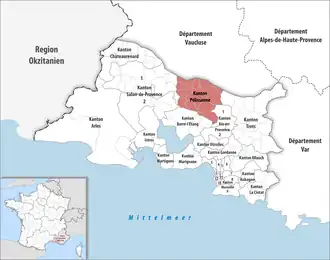 ![]() Lage des Kantons Pélissanne im Département Bouches-du-Rhône | |
