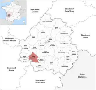 ![]() Lage des Kantons Pays de la Force im Département Dordogne | |