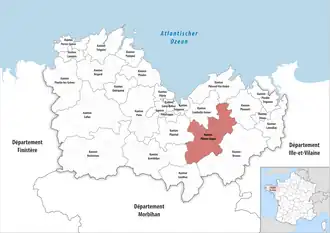 ![]() Lage des Kantons Plénée-Jugon im Département Côtes-d’Armor | |