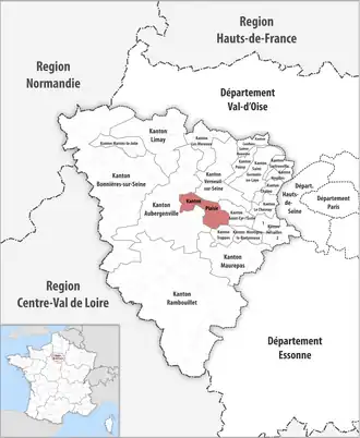 ![]() Lage des Kantons Plaisir im Département Yvelines | |