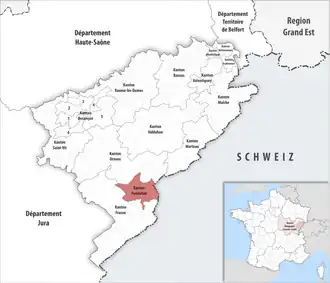 ![]() Lage des Kantons Pontarlier im Département Doubs | |