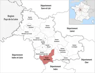 ![]() Lage des Kantons Saint-Aignan im Département Loir-et-Cher | |
