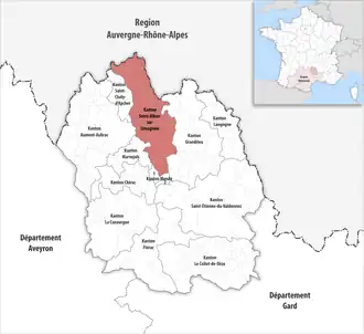 ![]() Lage des Kantons Saint-Alban-sur-Limagnole im Département Lozère | |