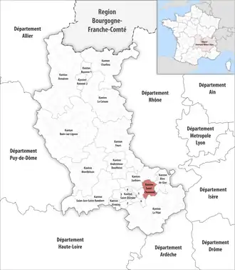 ![]() Lage des Kantons Saint-Chamond im Département Loire | |
