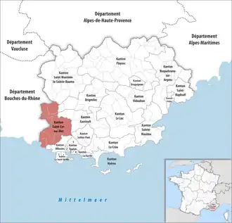 ![]() Lage des Kantons Saint-Cyr-sur-Mer im Département Var | |