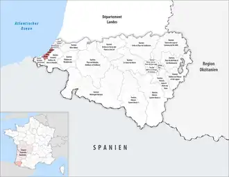 - ↑ Décret n° 2014-248 du 25 février 2014 portant délimitation des cantons dans le département des Pyrénées-Atlantiques. Légifrance, 22. März 2017, abgerufen am 22. März 2017 (französisch).