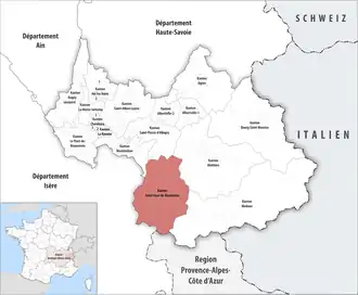 ![]() Lage des Kantons Saint-Jean-de-Maurienne im Département Savoie | |