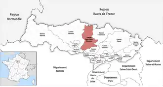 ![]() Lage des Kantons Saint-Ouen-l’Aumône im Département Val-d’Oise | |