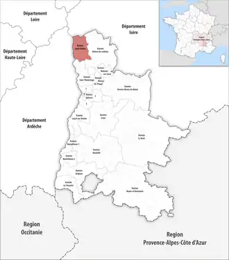 ![]() Lage des Kantons Saint-Vallier im Département Drôme | |