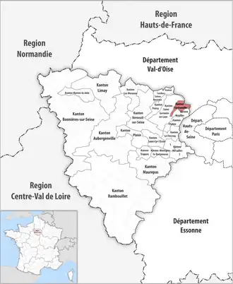 ![]() Lage des Kantons Sartrouville im Département Yvelines | |