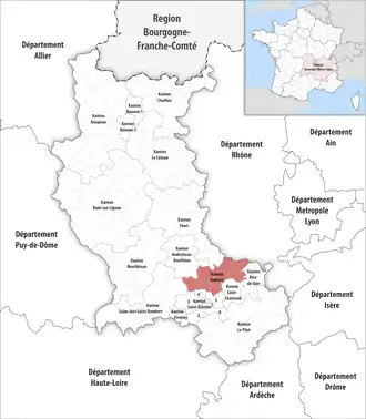 ![]() Lage des Kantons Sorbiers im Département Loire | |