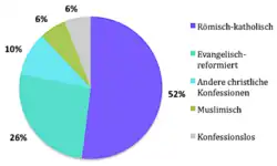 - ↑ Bundesamt für Statistik: Ständige Wohnbevölkerung ab 15 Jahren nach Religionszugehörigkeit und Kanton, 2017. (XLSX; 377 kB) 2019, abgerufen am 3. Juni 2020.