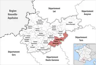 ![]() Lage des Kantons Tarn-Tescou-Quercy vert im Département Tarn-et-Garonne | |