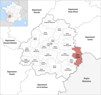 ![]() Lage des Kantons Terrasson-Lavilledieu im Département Dordogne | |
