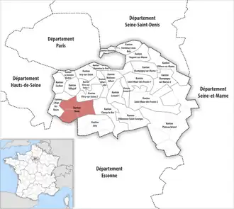 ![]() Lage des Kantons Thiais im Département Val-de-Marne | |