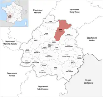 ![]() Lage des Kantons Thiviers im Département Dordogne | |